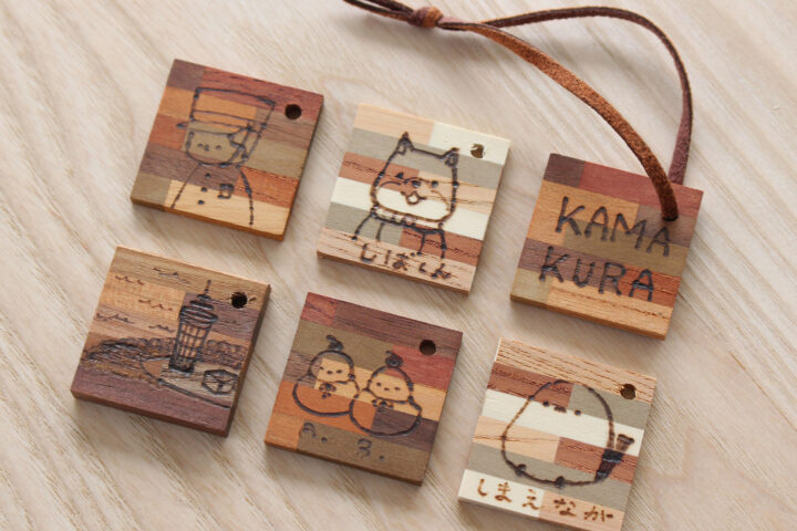 手神の作り手 小林じゅんのが作った寄木細工をベースに、岩宮千尋がお客様のご要望を聞きながら焦がし絵の技法で絵を描き加え、世界にひとつのチャームをお作りします。